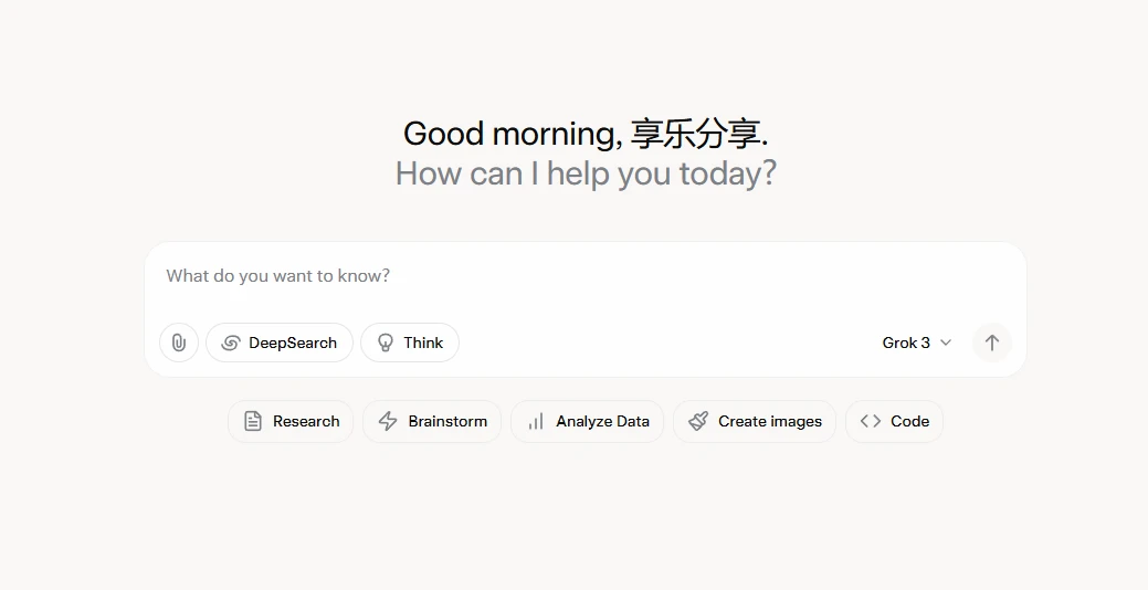 首先看看Grok 3的默认界面吧: