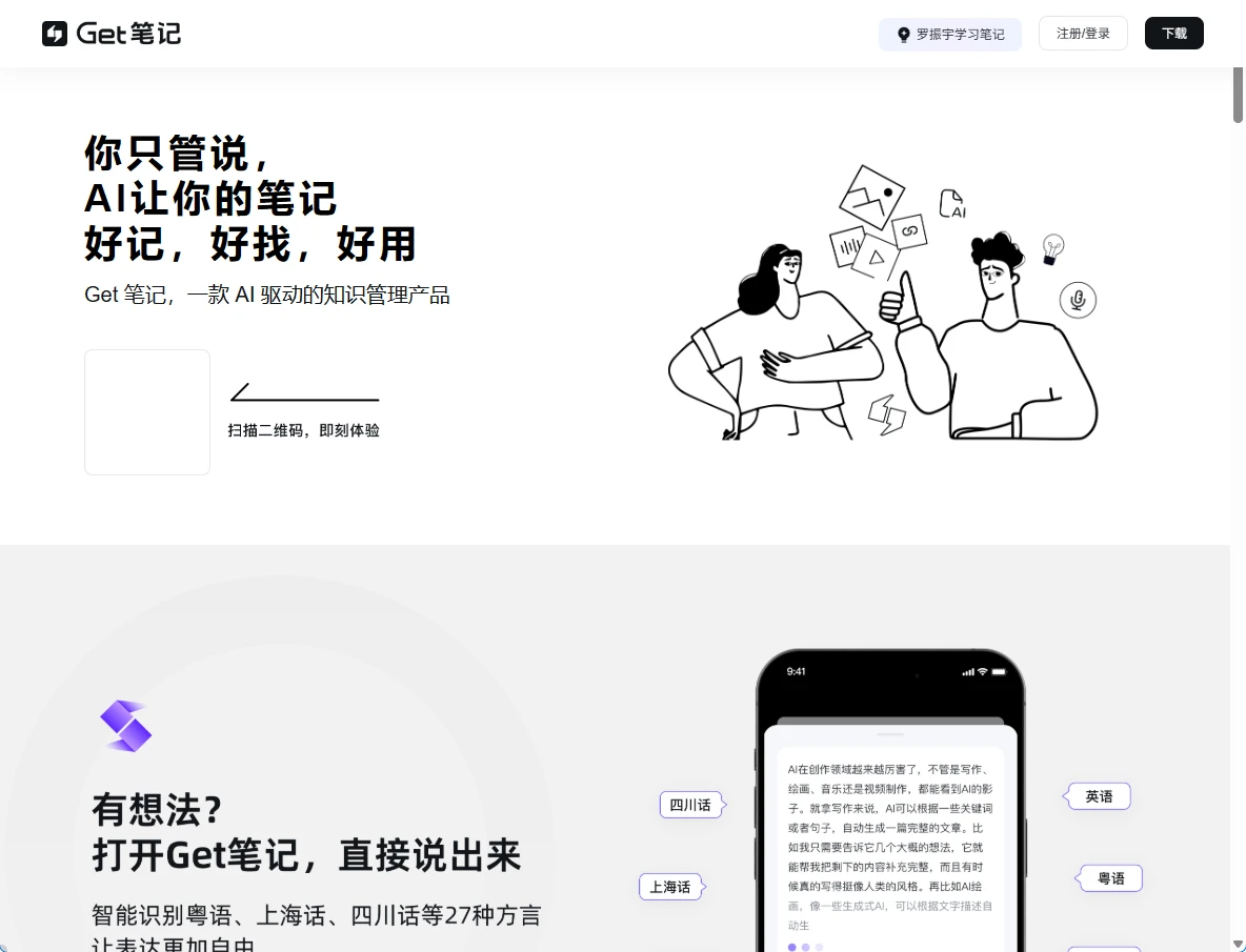站点描述:Get笔记作为新一代AI笔记工具,帮你实现高效记录、深度思考。通过智能记录、整理,让知识流动起来。