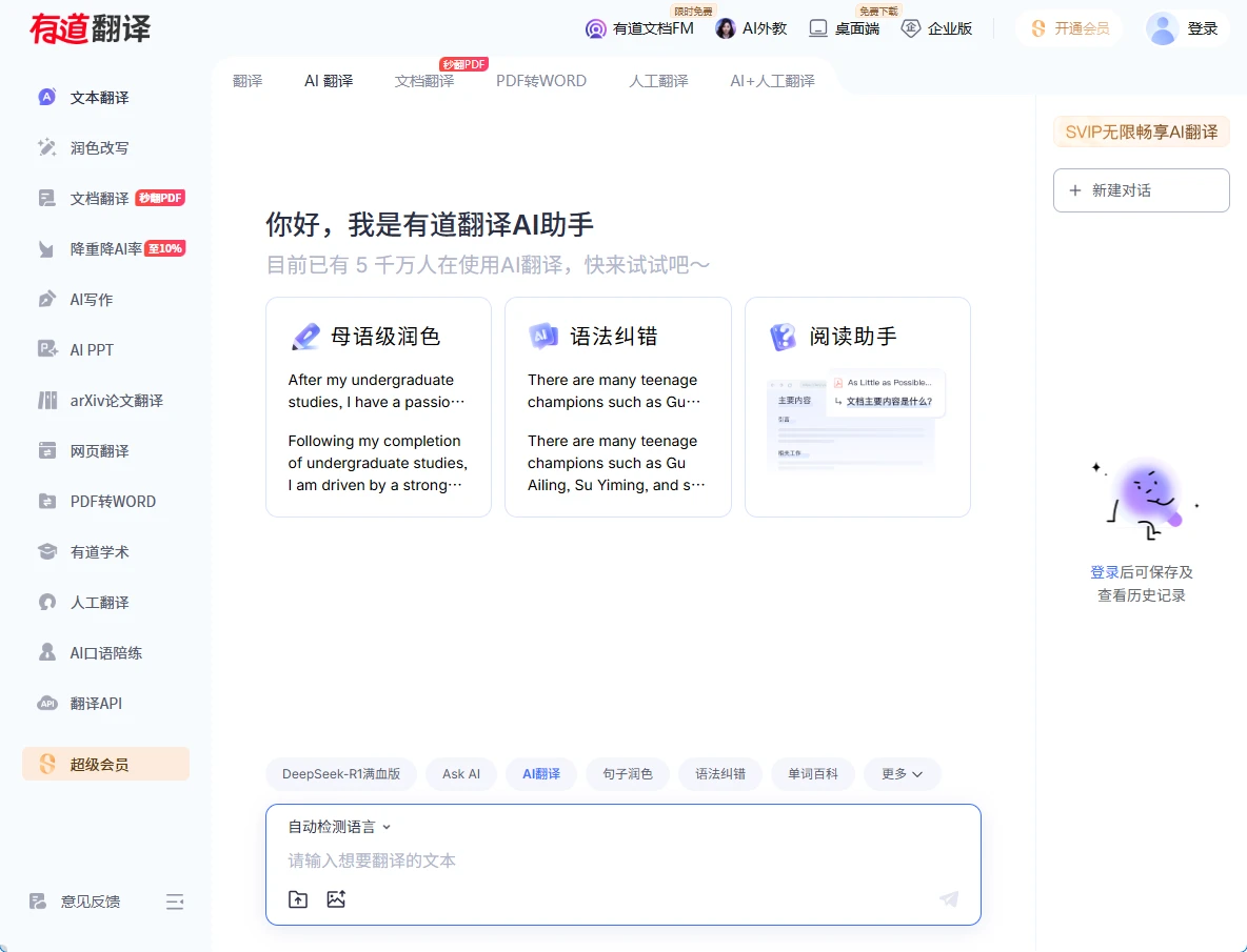 站点描述:有道翻译提供即时免费的中文、英语、日语、韩语、法语、德语、俄语、西班牙语、葡萄牙语、越南语、印尼语、意大利语、荷兰语、泰语全文翻译、网页翻译、文档翻译、PDF翻译、DOC翻译、PPT翻译、人工翻译、同传等服务。