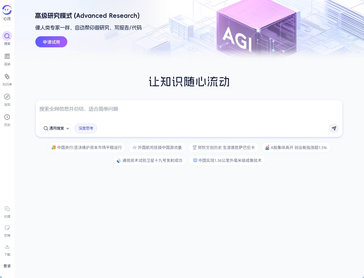 站点描述:心流是一款AI助手,帮助你高效获取知识,无论是日常娱乐生活百科还是专业学术论文知识,都可以轻松解答,让你快速进入心流状态,让知识随心流动!