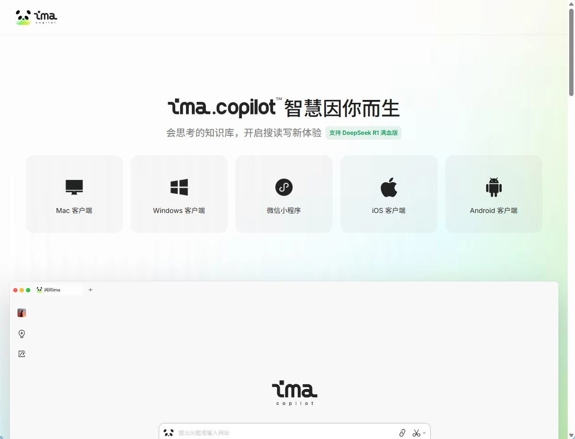 站点描述:ima.copilot(简称ima)是一款以知识库为核心的智能工作台产品,已接入腾讯混元大模型和DeepSeek R1模型满血版。ima是搜、读、写一体的效率工具,旨在帮助有较强知识获取、信息处理、内容输出需求的用户,提升学习、办公效率。