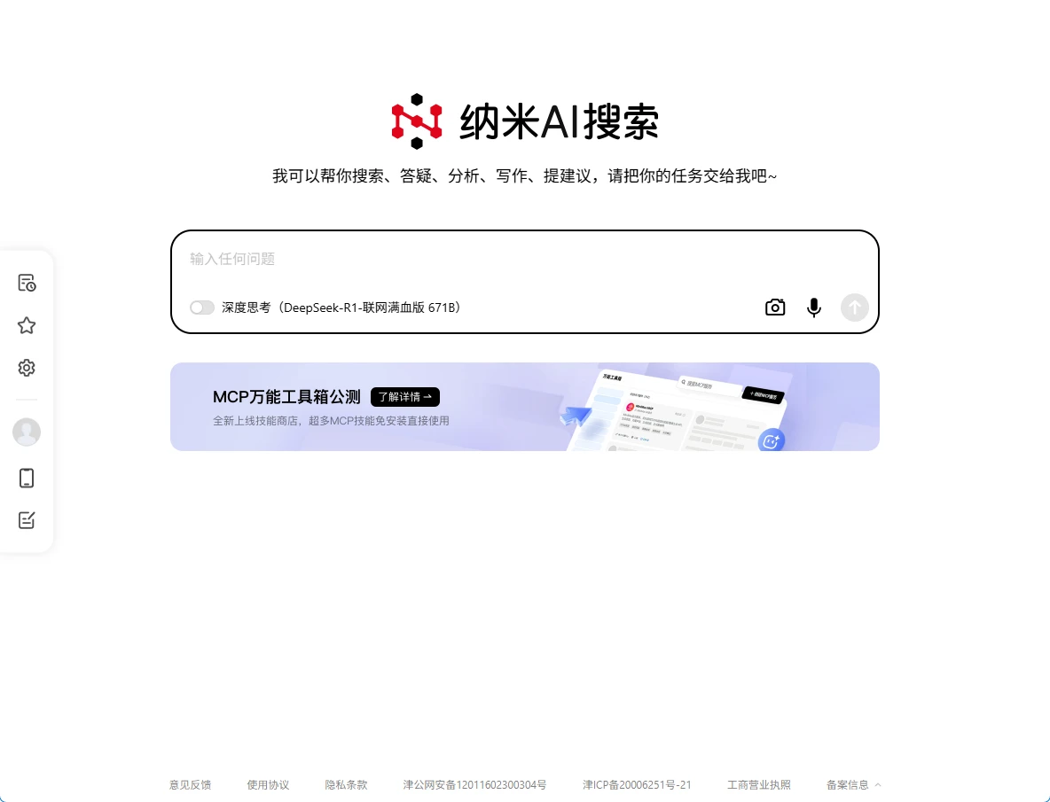 站点描述:纳米AI搜索开创全新问答方式,没有套路,直接给答案,让搜索变得简单直观!拍照问、语音搜、听答案,让搜索随心所欲,智慧触手可得。