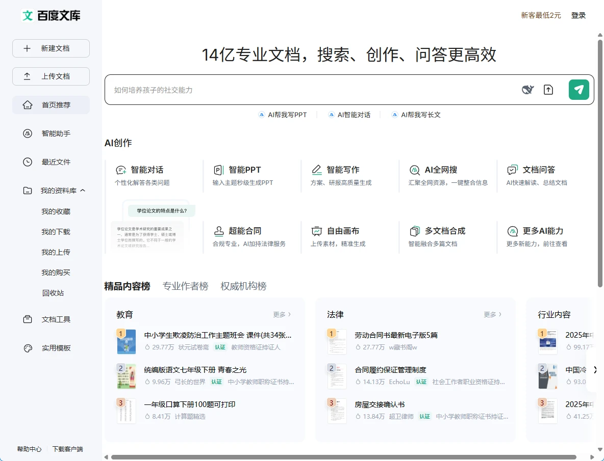 站点描述:百度文库 - 一站式AI内容获取和创作平台