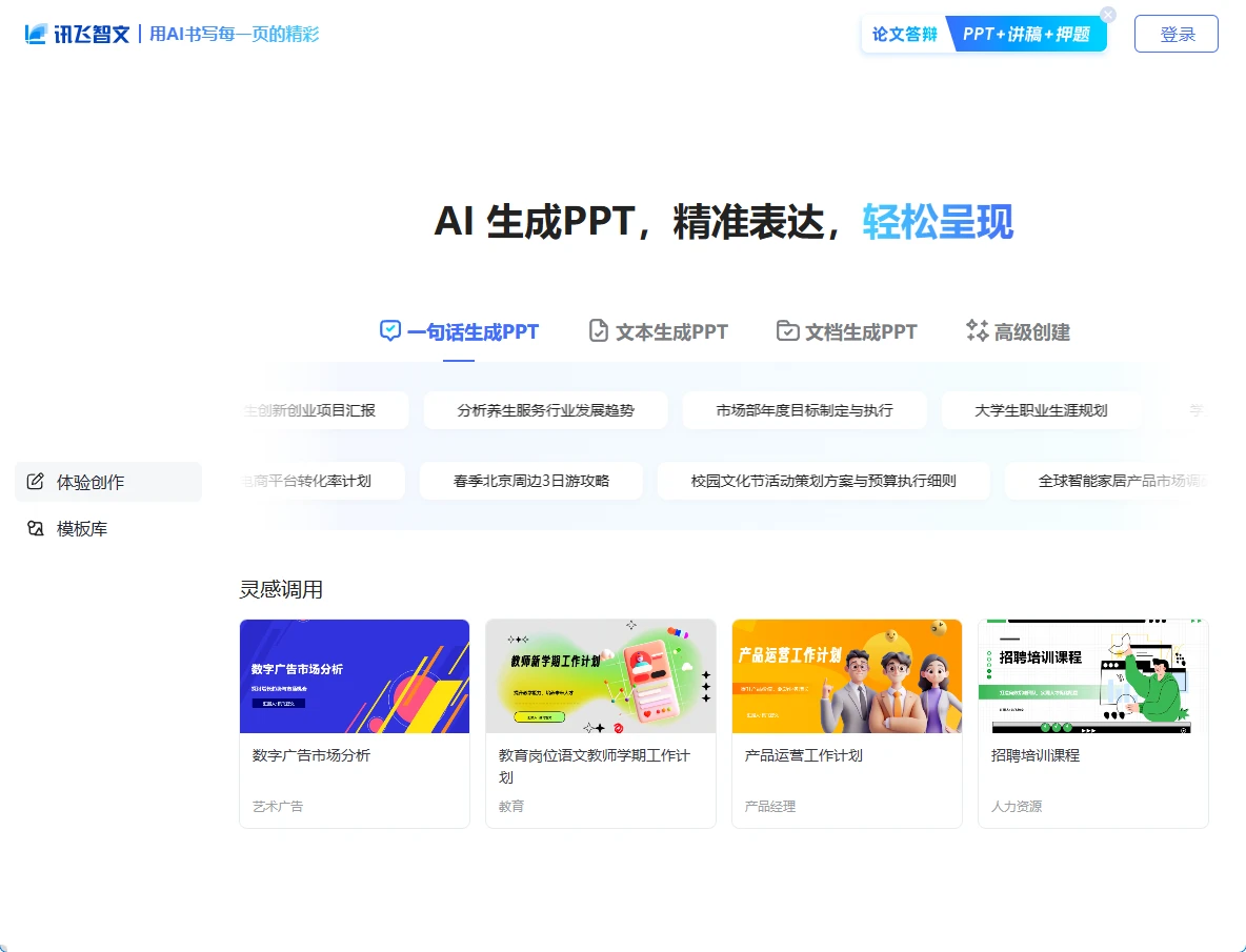| 讯飞智文 | 讯飞智文,由科大讯飞推出的一键生成ppt/word产品。根据一句话、长文本、音视频等指令智能生成文档,同时支持在线编辑、美化、排版、导出、一键动效、自动生成演讲稿等功能,让AI全流程服务到底。 | https://zhiwen.xfyun.cn |