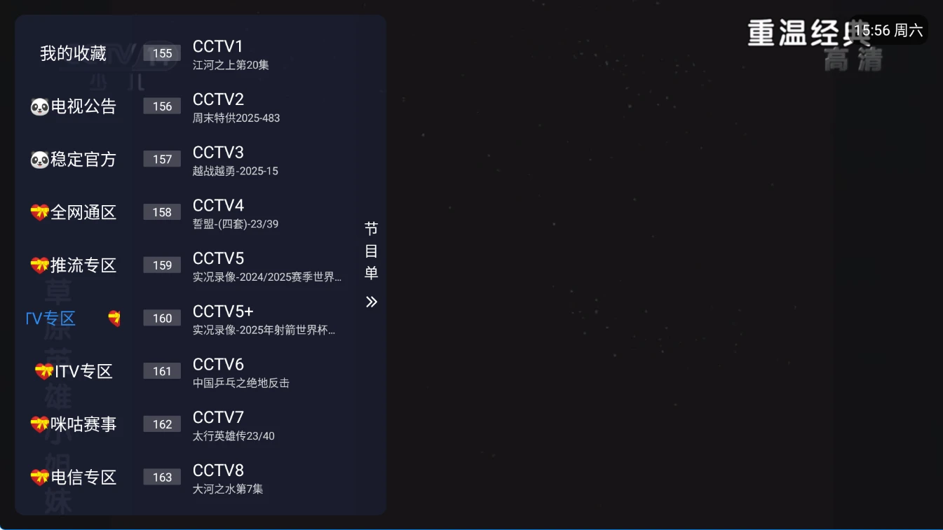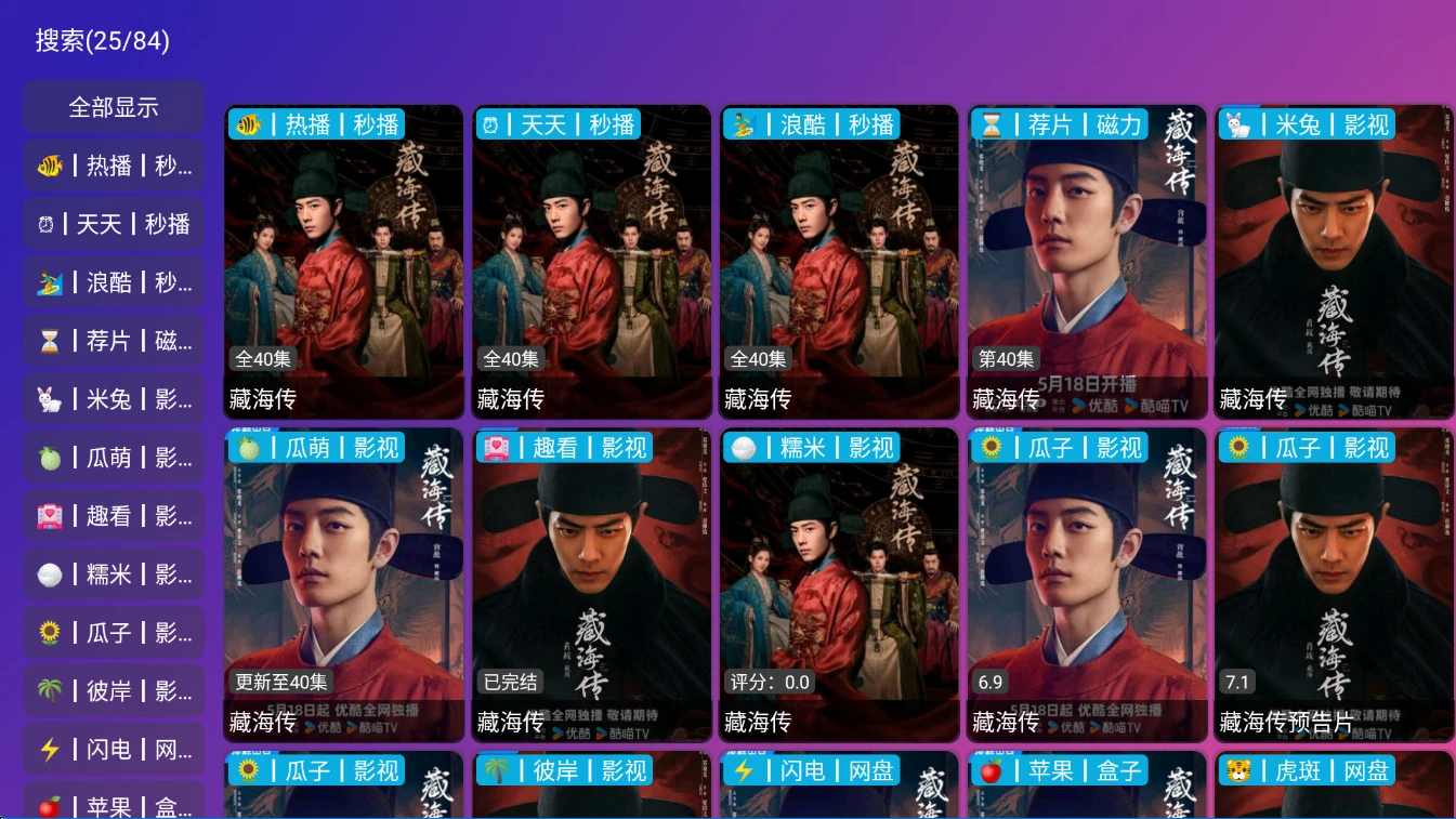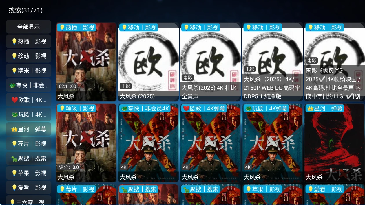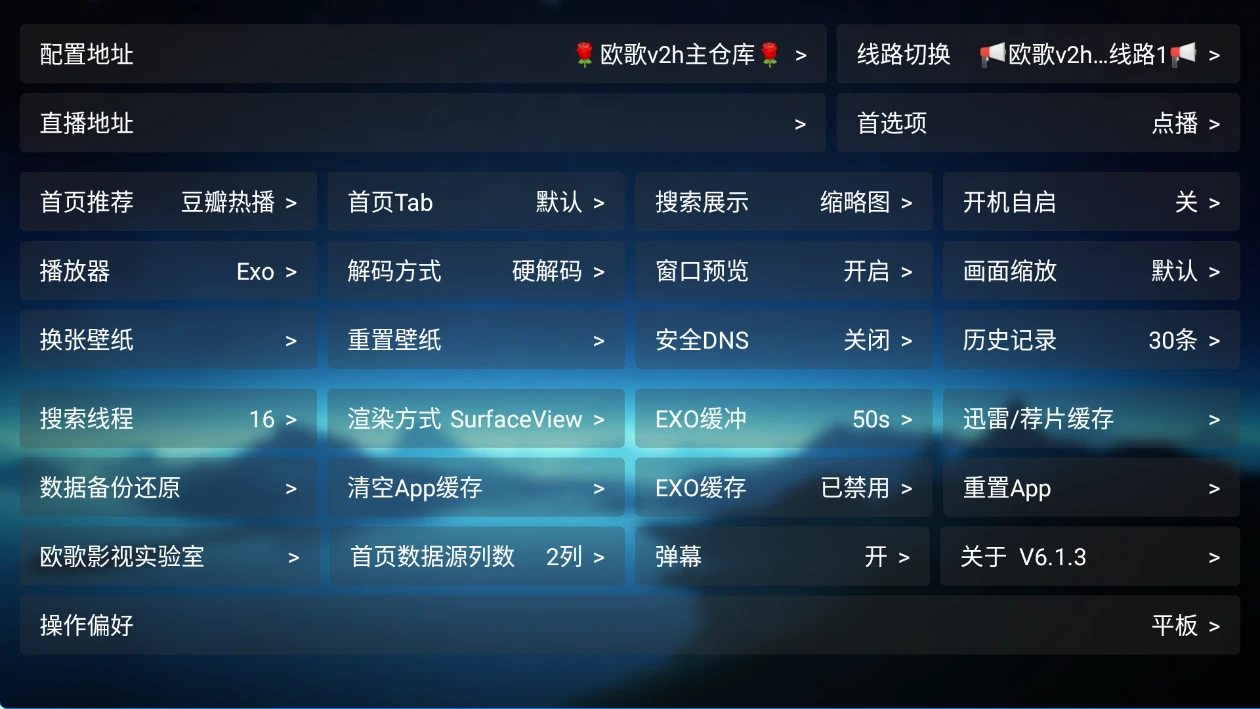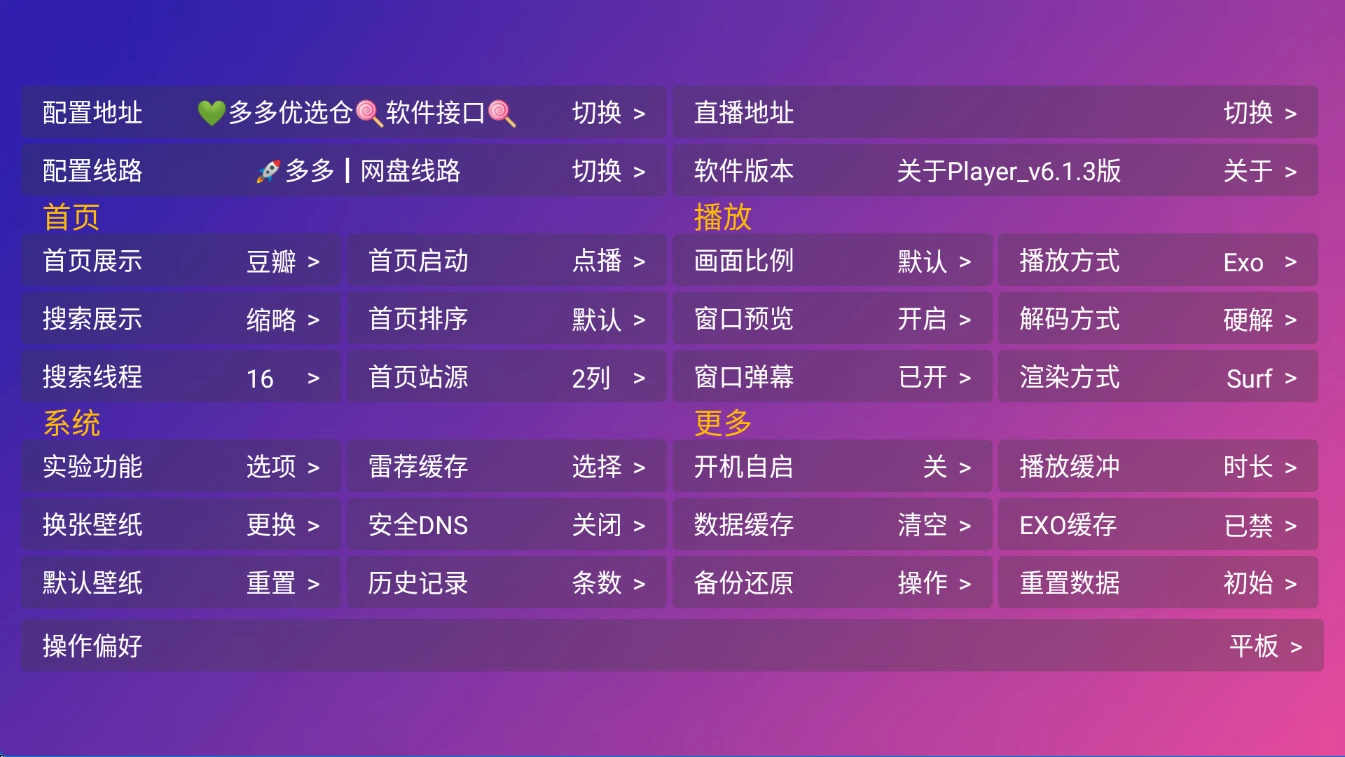 TV端的软件如果首页无数据或者说搜索不出来数据,尝试更新配置或者切换播放源。