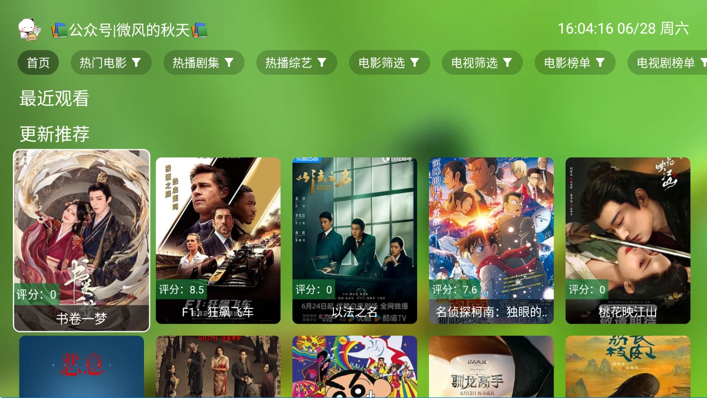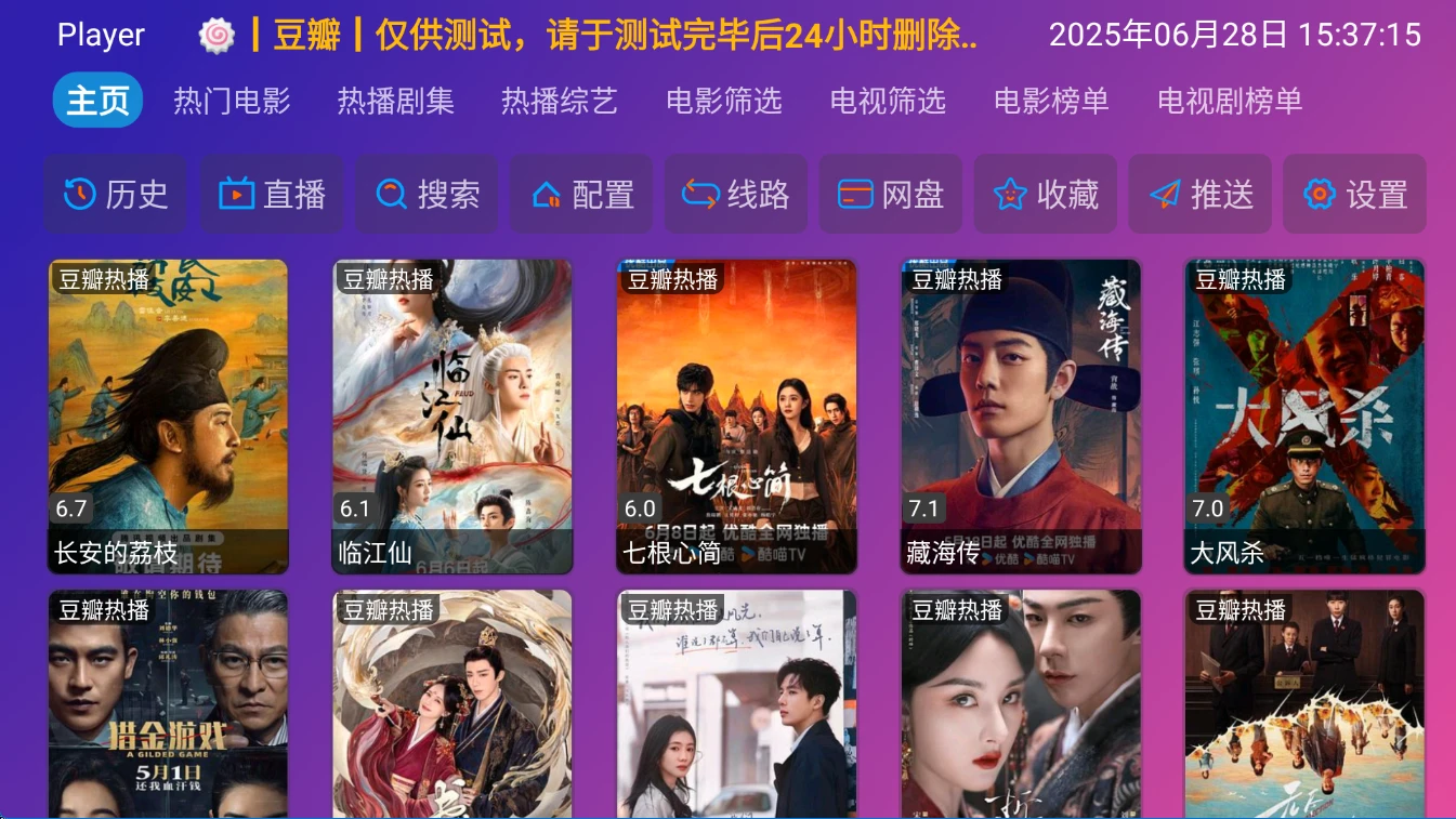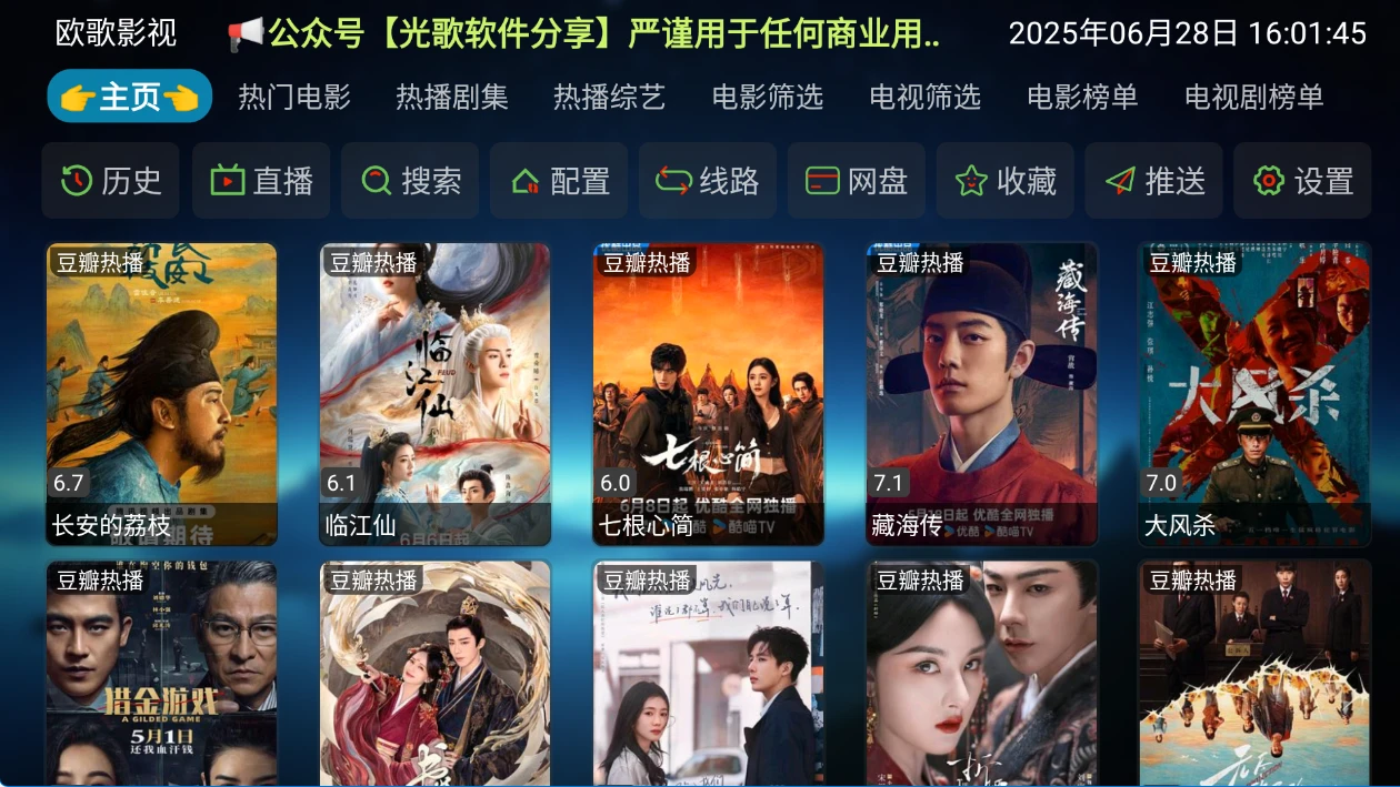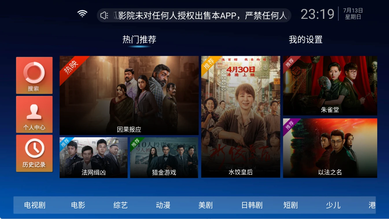 TV端的软件如果首页无数据或者说搜索不出来数据,尝试更新配置或者切换播放源。