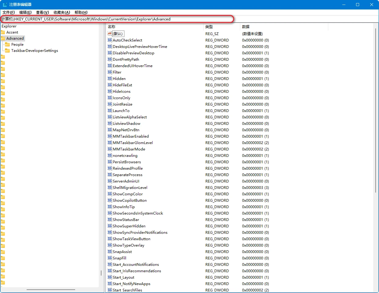 HKEY_CURRENT_USER\SOFTWARE\Microsoft\Windows\CurrentVersion\Explorer\Advanced