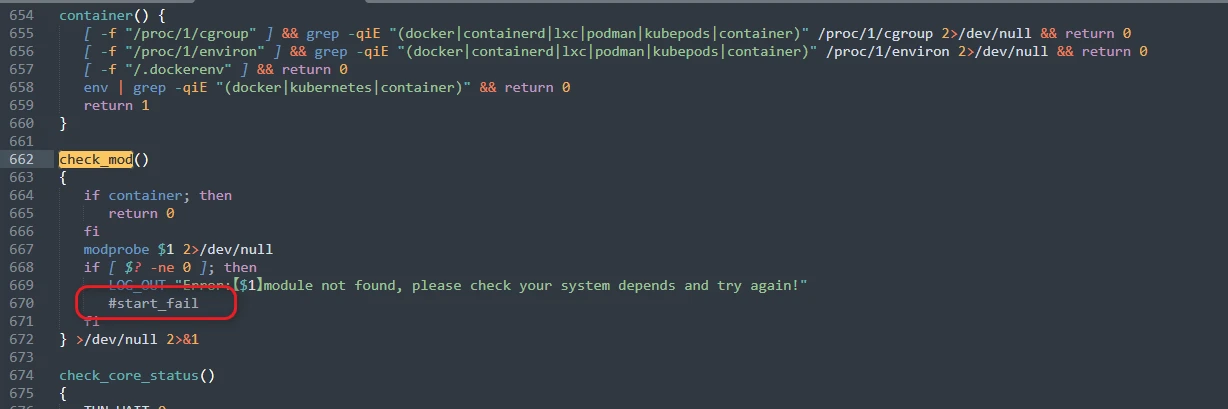 暂时把 check_mod 里的 start_fail 给注释掉