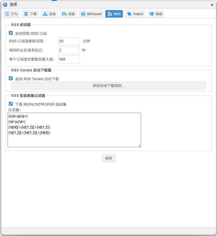 目前有一个笔记本安装了飞牛OS,并且通过docker安装了qBittorrent,就想着利用其自带的RSS来自动下载新电影,针对我这种选择困难症的用户来说,「全要」是我唯一的答案,所以我选择筛选之后自动全部下载,管他好看不好看,先下载再说。