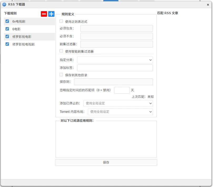 上图的配置是根据我个人来设定的,大家可以根据自己的需求来决定更新频率,点击「修改自动下载规则」即可看到下面的界面: