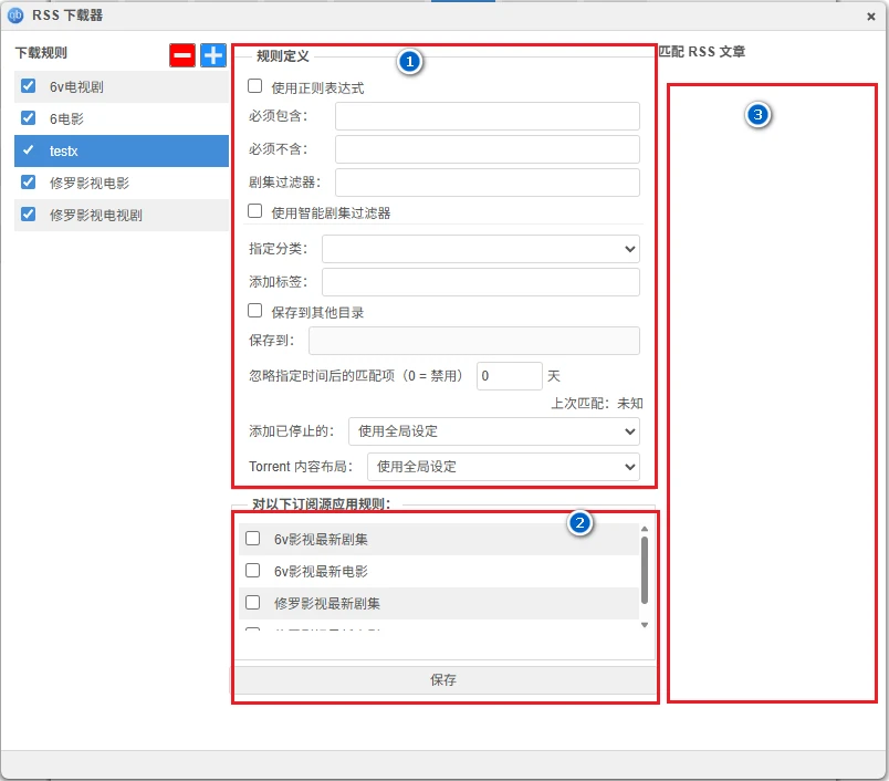 同样的,默认情况下,下载规则部分应该是全空,我这里已经设置好了,所以有四个部分。点击➕号按钮即可新增规则,规则名称自定义,能自己明白就行: