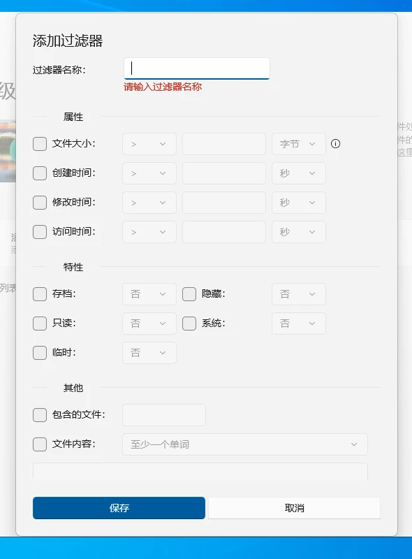 强大的文件过滤功能:支持根据文件名称、所在目录、大小、日期、属性、内容以及常规表达式精准筛选文件,帮助您高效定位所需文件。