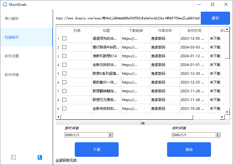 软件方面来自52破解论坛,个人测试了一些,感觉软件还是很好用的,相比一些在线解析站点,这个软件速度更快,可以进行批量下载,喜欢抖音小姐姐的朋友们,可以收藏一下。