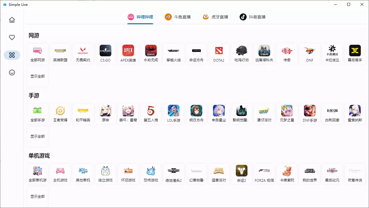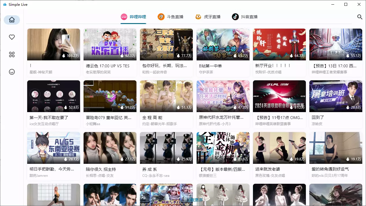 软件方面作为一款聚合直播,我个人感觉是目前见过最简洁的直播聚合软件了,软件覆盖了现有的所有平台。