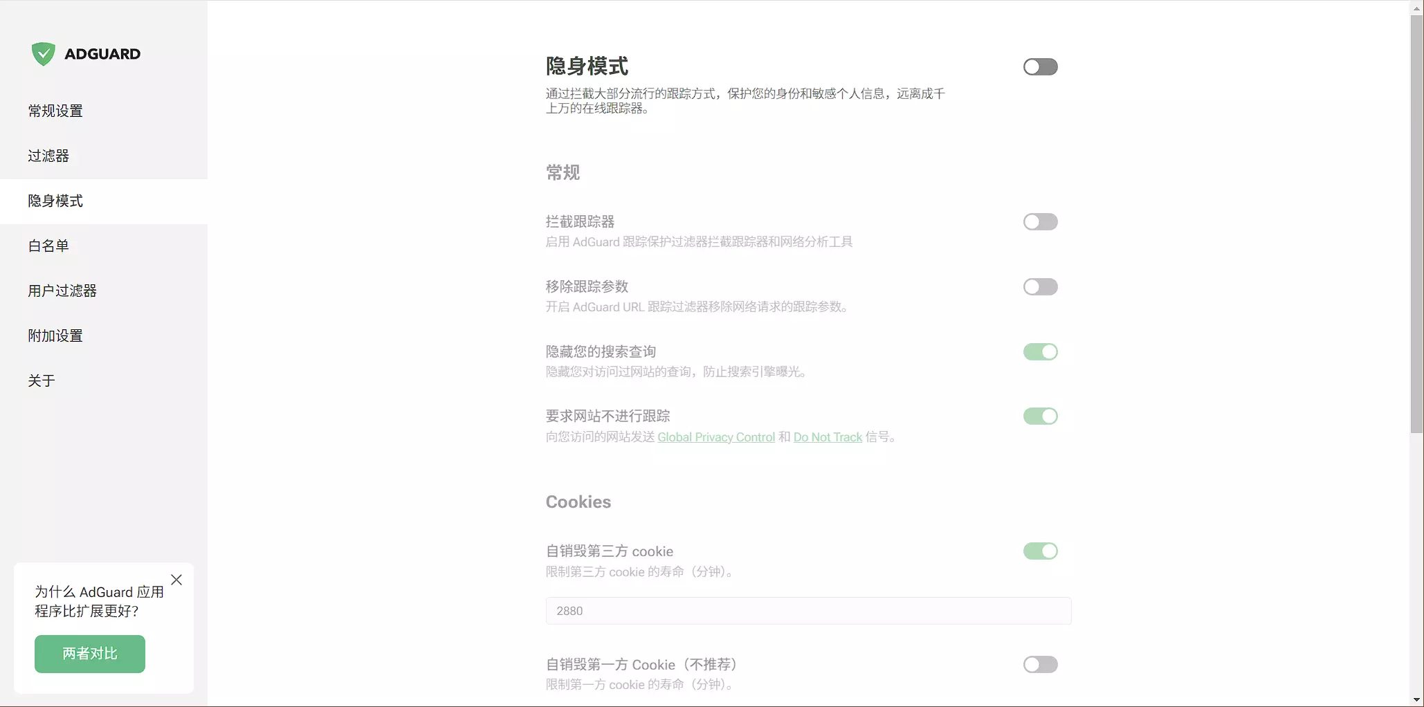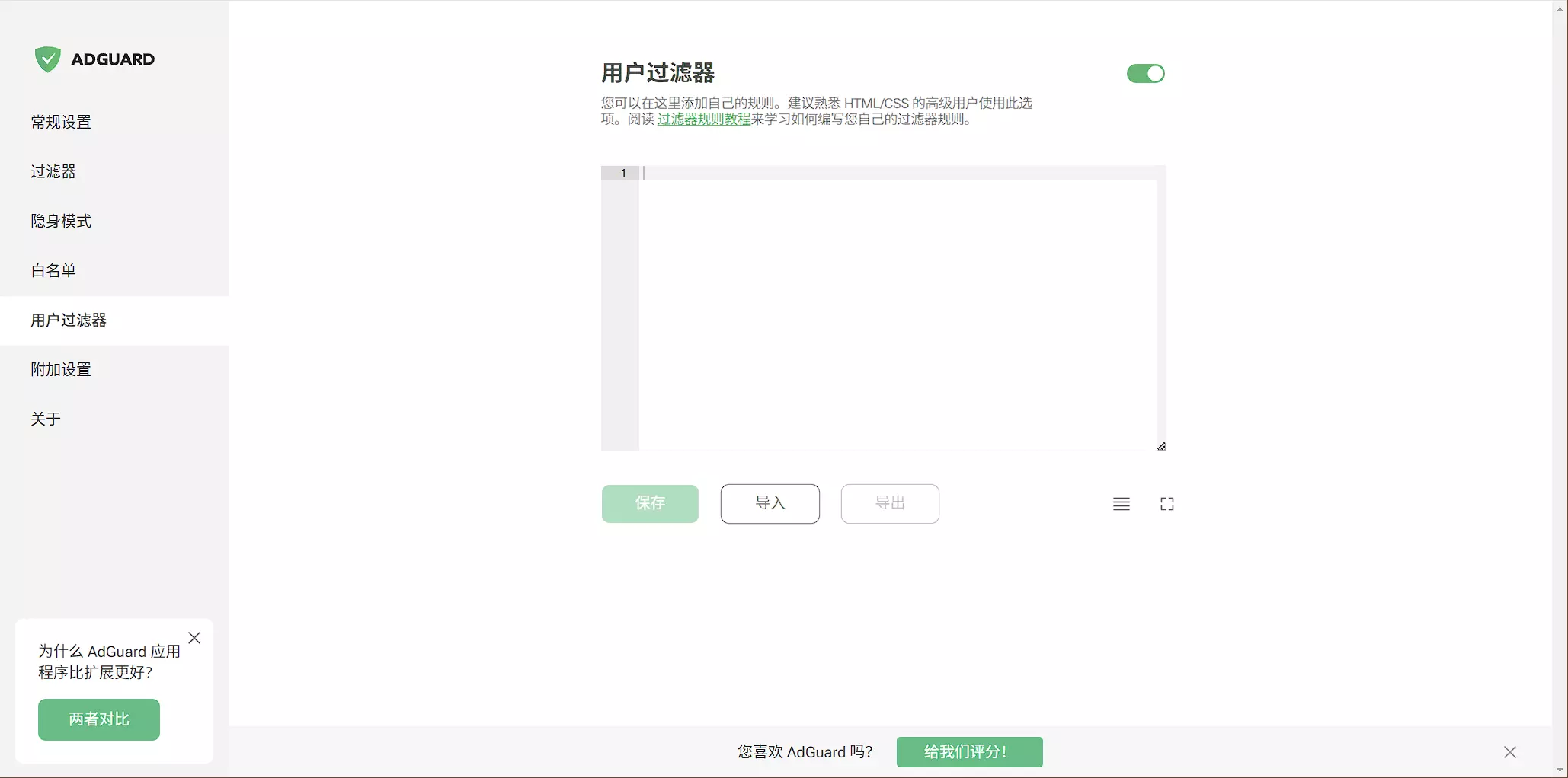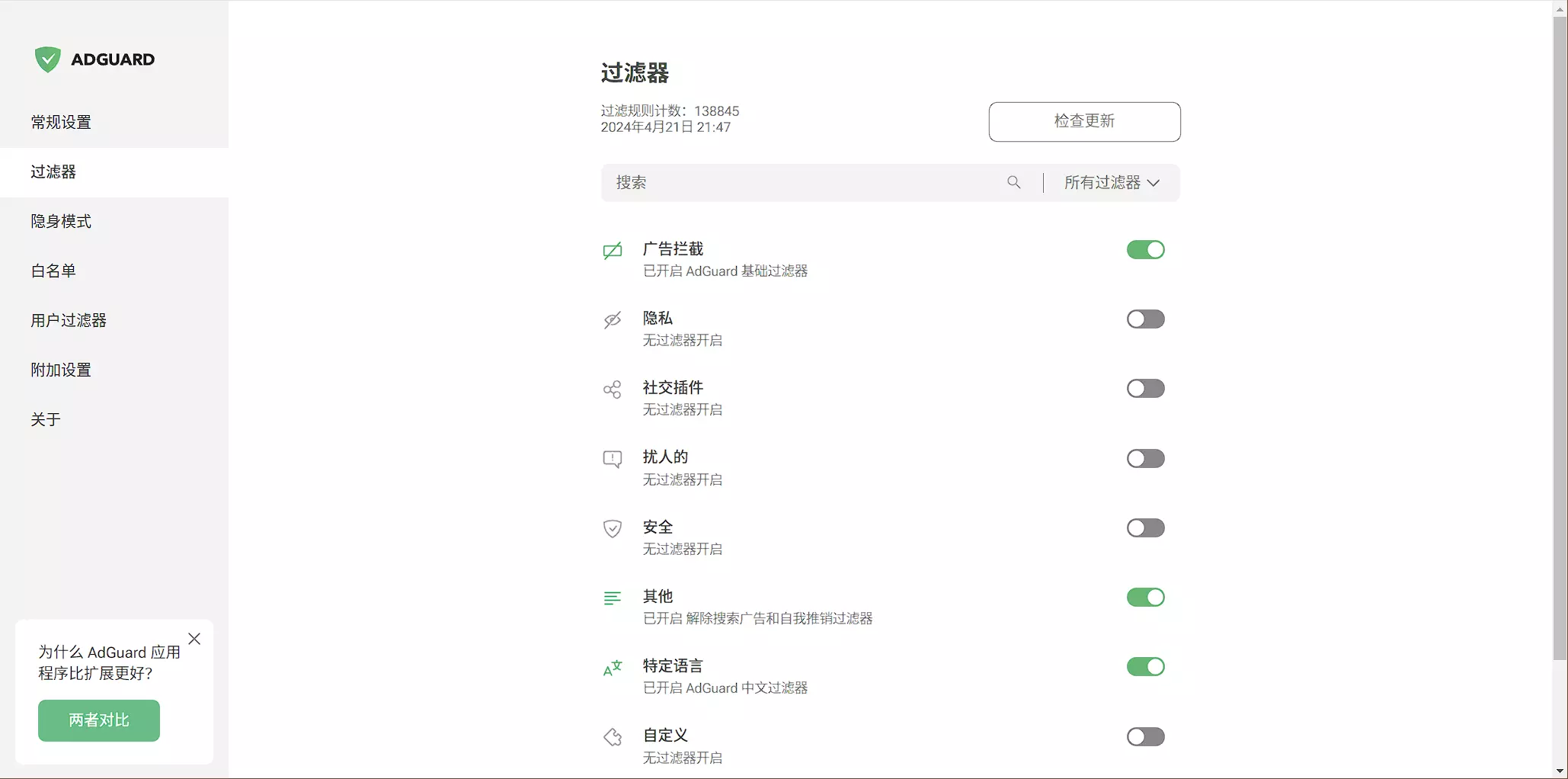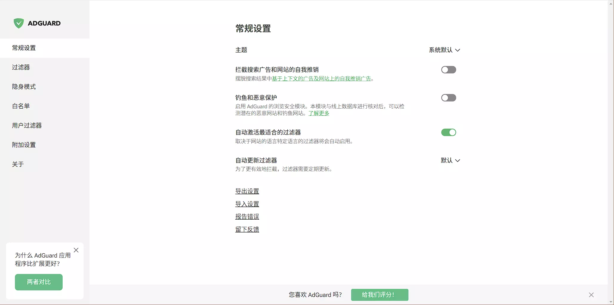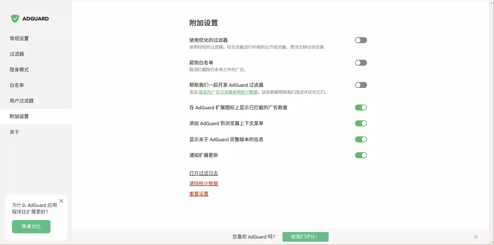 这款扩展是可以独立运行的,也可以和软件AdGuard一起运行。独立运行的时候,和常规的广告屏蔽插件没啥区别,基本功能都有,而且界面还很美观,如果你是一个颜值控,可以考虑这款扩展。
