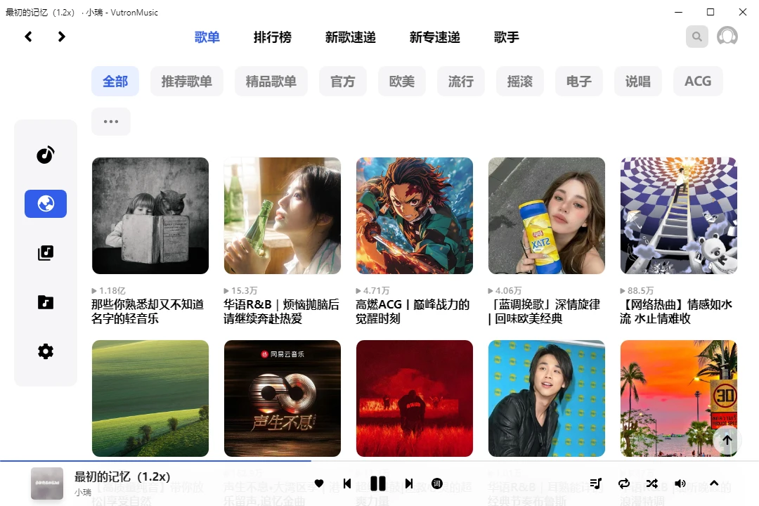 歌单列表页面如下,和官方还是有点差别的,不过感觉该软件的界面更加好看点。