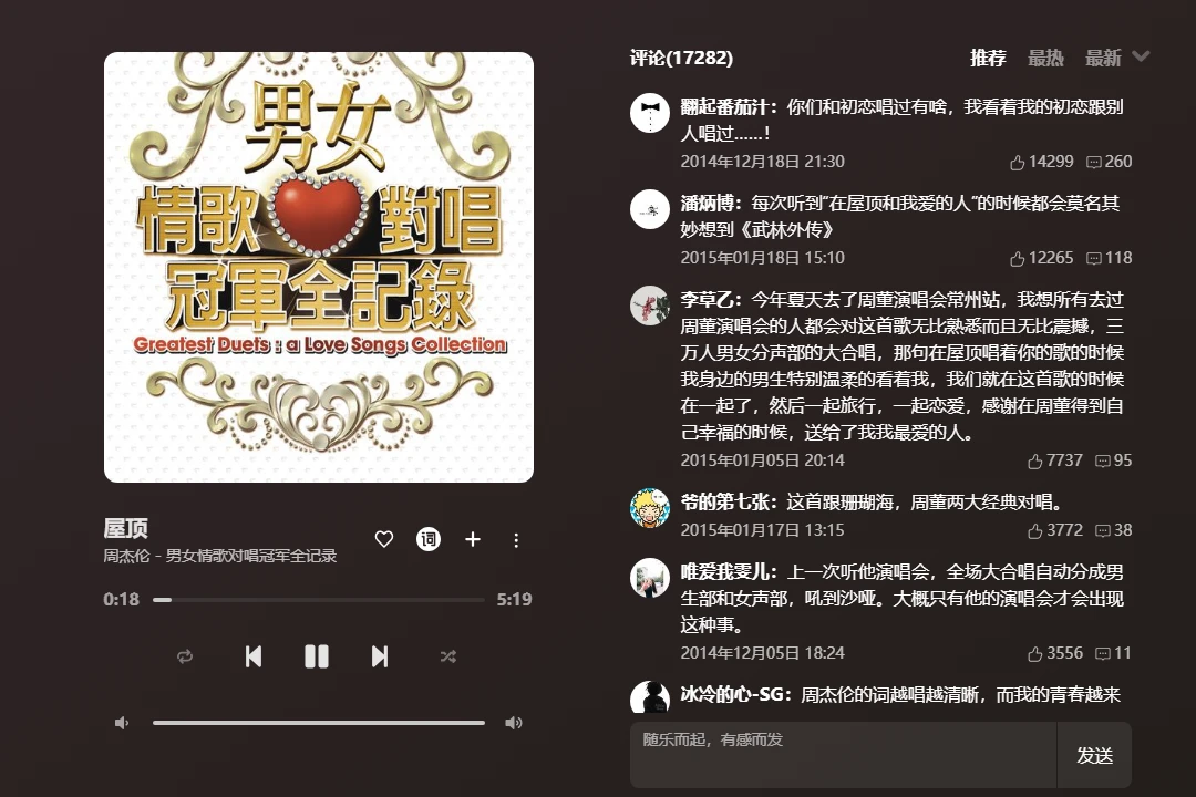 点击封面下方的评字按钮,即可看到该歌曲在网易云音乐里面的评论内容: