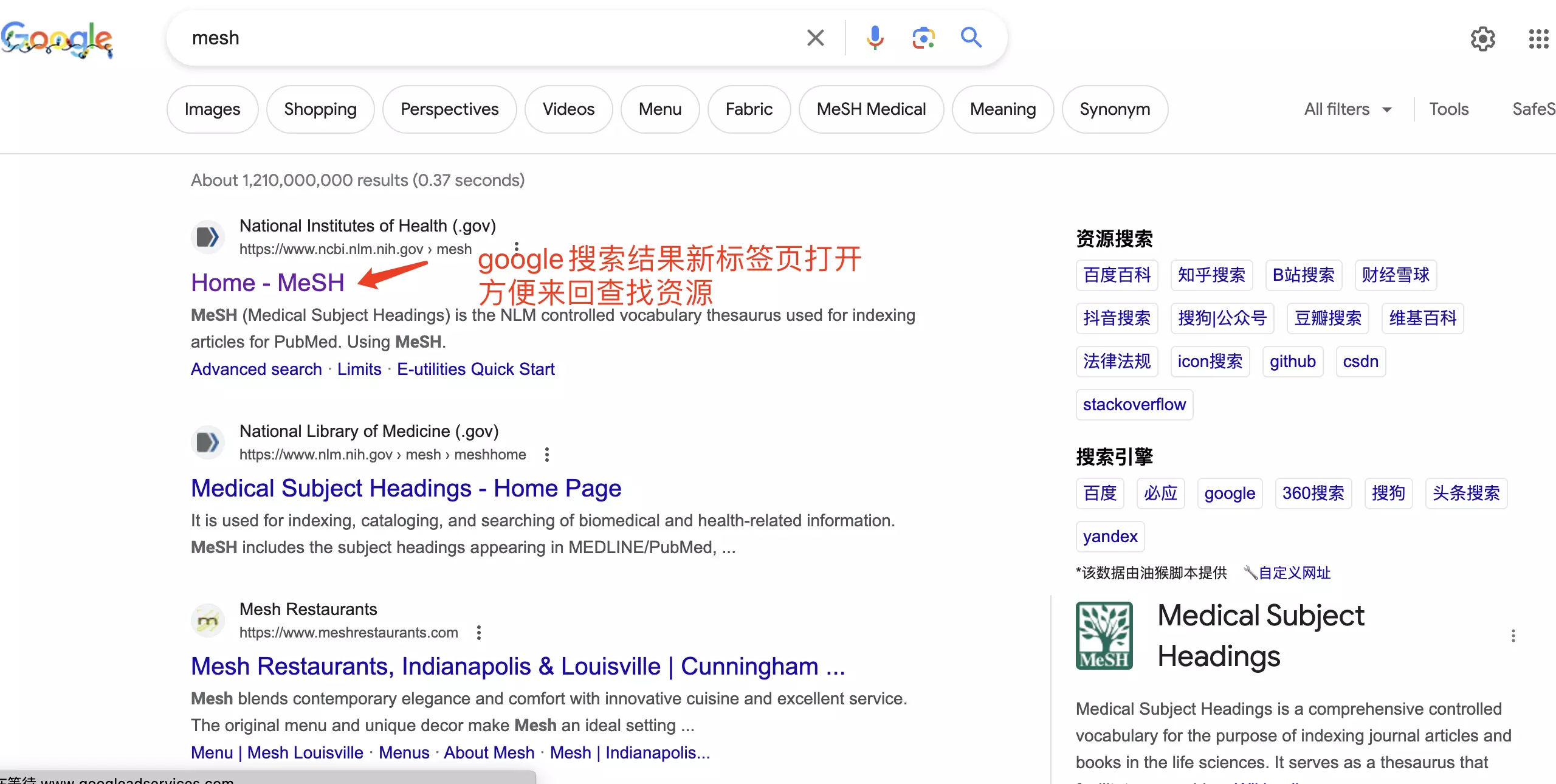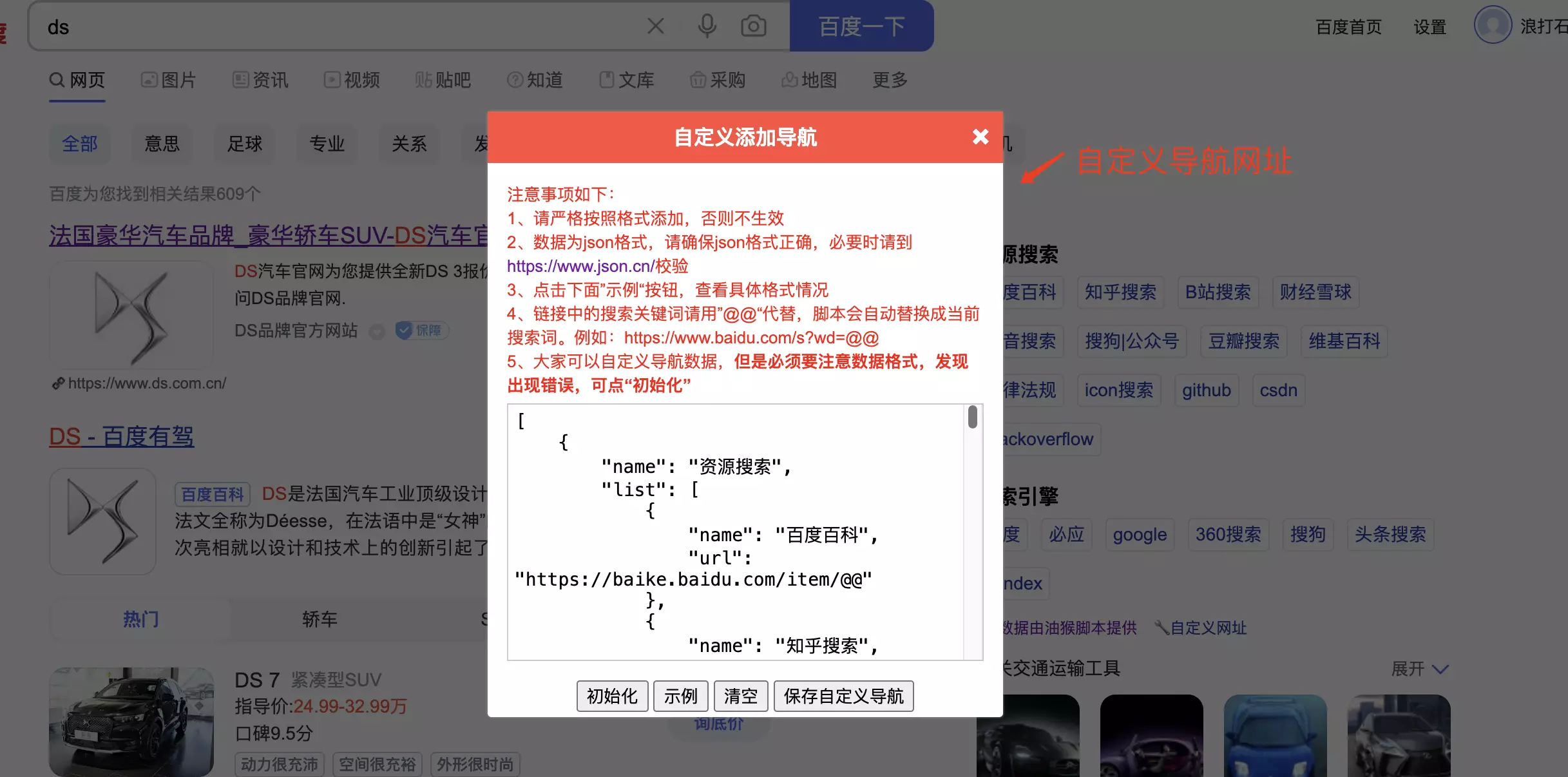 5、搜索引擎使用增强(已适配百度、搜狗、360、必应、Google)百度添加网址显示,google结果新标签页打开灯,导航可自定义网址