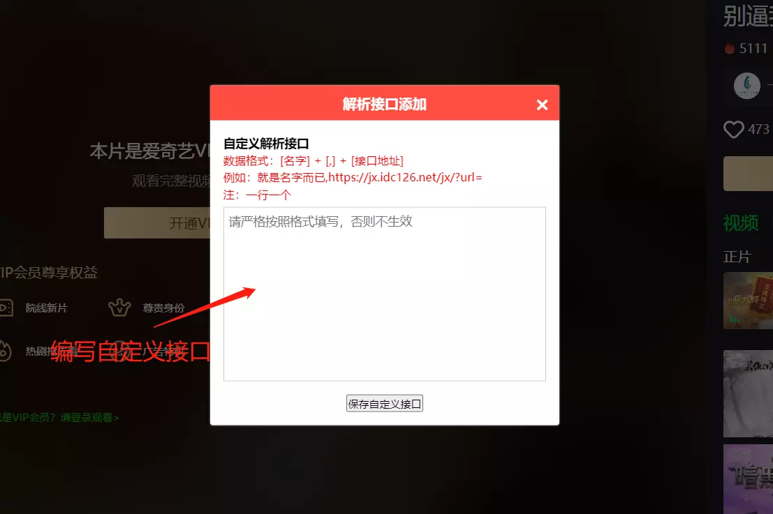 - VIP视频解析可自定义解析接口