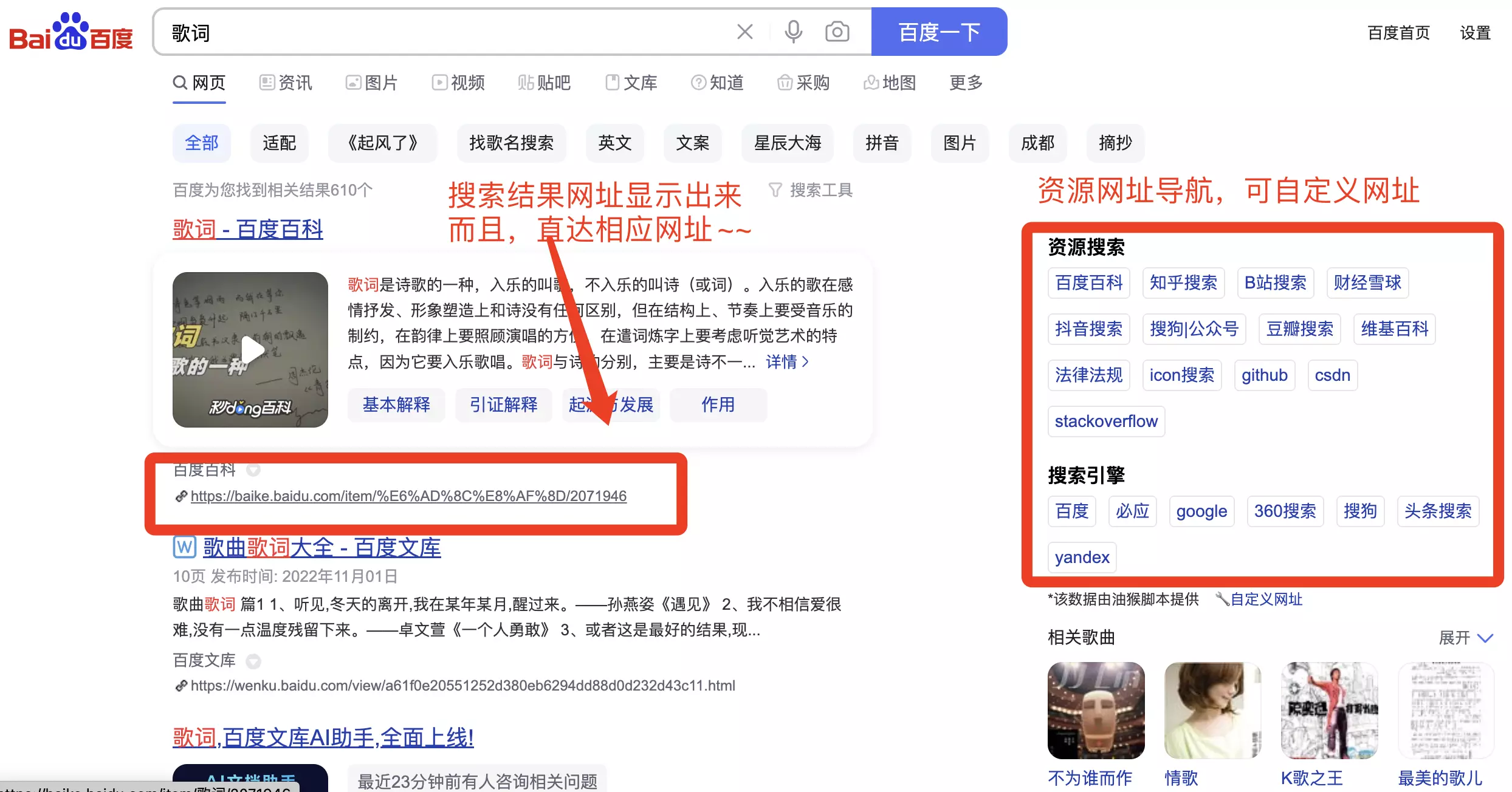 - 搜索引擎使用增强,功能截图如下
