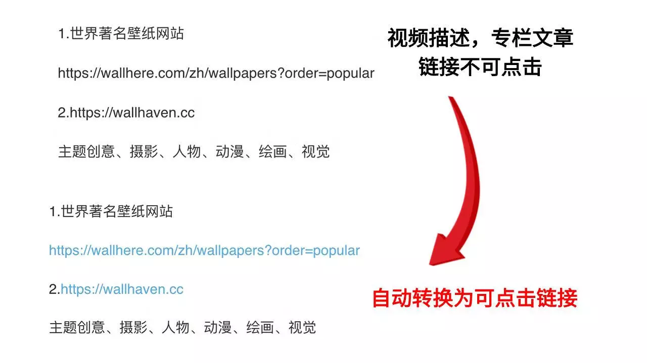- 视频详情页描述和专栏文章中的网址,自动转换成可点击链接
