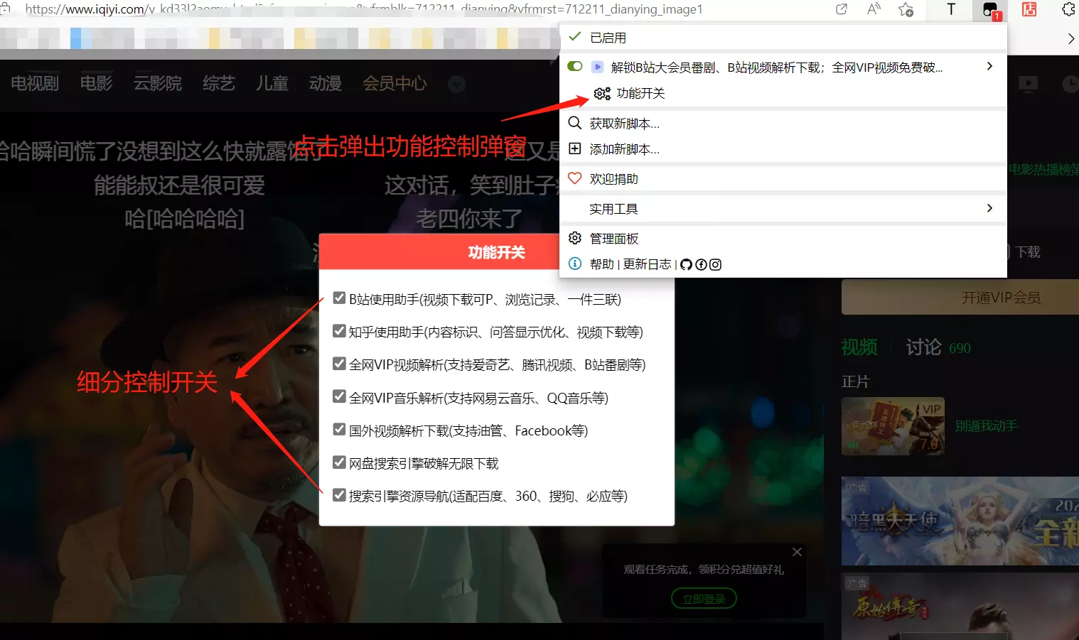 B站哔哩哔哩使用增强,全网VIP视频免费破解去广告,知乎使用增强,短视频无水印下载,油管、Facebook等国外视频解析下载等