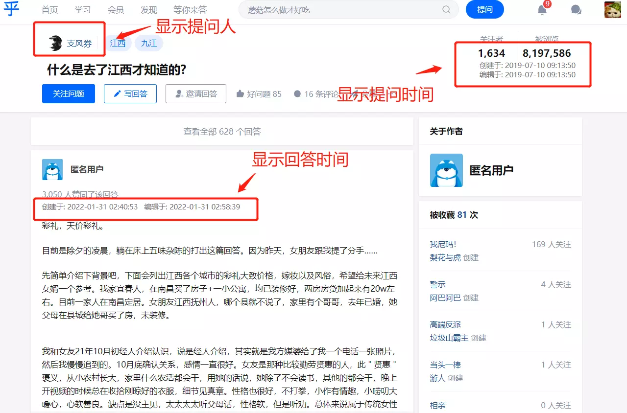 - 知乎使用助手:文章内容标识、显示问答时间、回答时间、提问人等