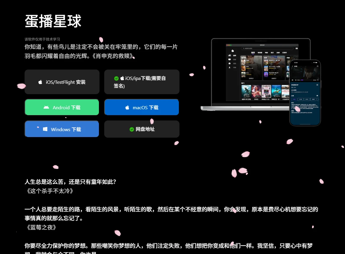 和很多常规影视站点不一样的是,该站点居然不提供网页版本,转向支持除了网页版本的全平台版本,所以如果你是移动端亦或者是想通过软件直接看的,那么可以考虑一下。