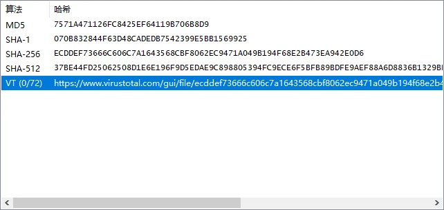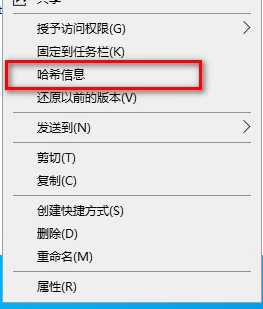 安装完成之后就可以直接在鼠标右键看到这个菜单项目了,当你需要查看某个程序的hash值,直接在程序上面鼠标右键之后选择「哈希计算」即可看到下面的界面: