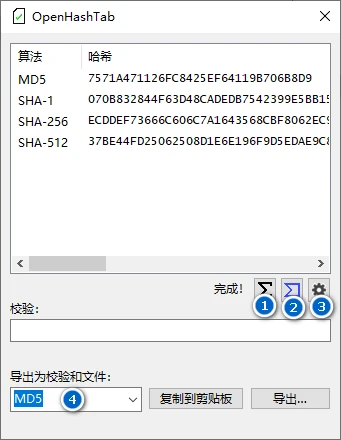 4️⃣号按钮可以选择性的到处检验文件,方便你进行分享或者打包,告知用户这个文件原始值是多少,防止使用篡改的文件或应用。