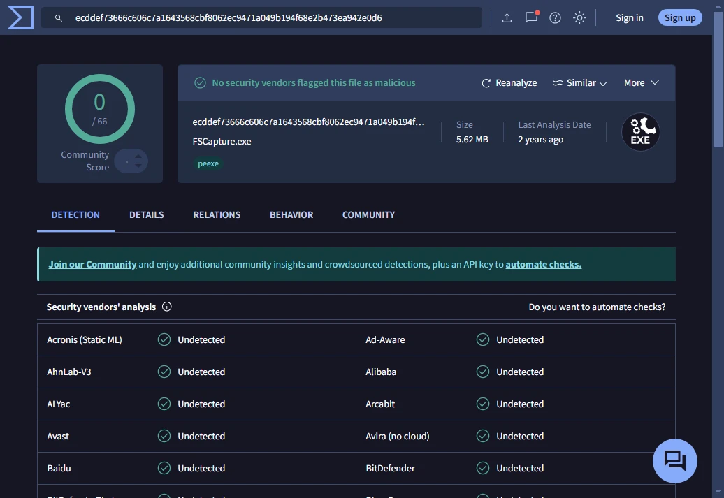 上图中,存在四个部分,1️⃣号按钮不知道是干什么的,2️⃣号按钮点击之后会增加一个项目,这个项目是利用VirusTotal进行安全检查,快速判断当前文件是否存在问题,如下图: