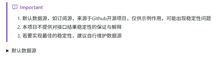 该项目是开发者将一些源进行了一定程度的整合,配合上自己的功能,让本来不是很容易的事情变得非常简洁高效,如果你想要知道该软件获取的数据从哪里来,可以看看这里的默认数据源: