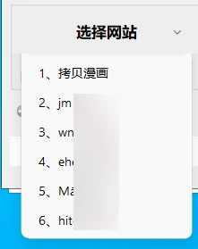 首先我们点击1️⃣号按钮按钮选择需要下载的漫画站点,该软件目前提供了下方的站点选择: