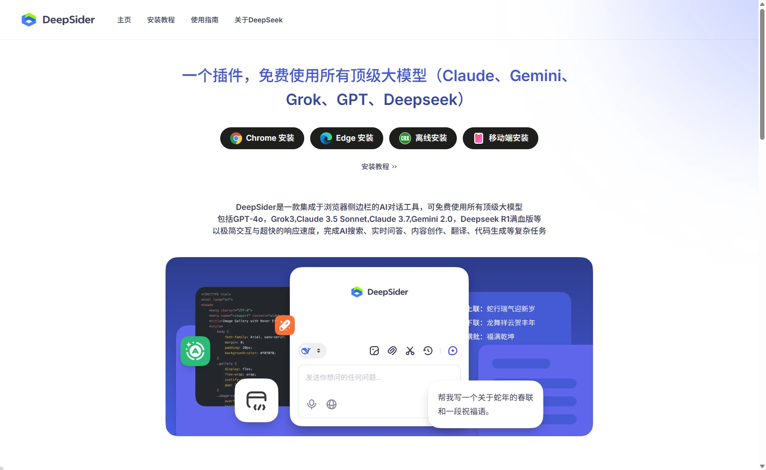 今天推荐的这个扩展是可以使用目前市面上比较主流的AI产品,其中不乏一些需要付费或者科学环境才能使用的AI,比如ChatGPT、Claude、Gemini等等,都在它的使用范围之内: