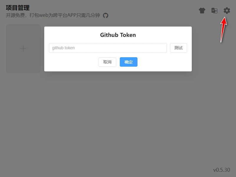 默认情况下,软件界面就是上图所示,在操作之前,你需要点击右上角的齿轮图标,输入你的github token值: