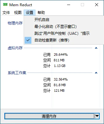 如果你是小白,你需要做的事情就是直接点击清理内存即可,如果你喜欢折腾,可以看看「清理内存」旁边的三角形按钮内的内容: