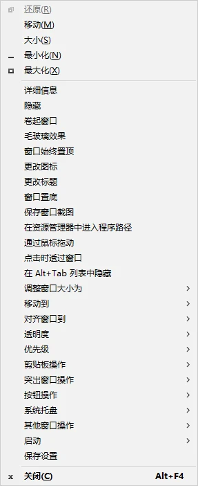 提供丰富的窗口管理功能,如隐藏、滚动、置顶、更改图标和标题等