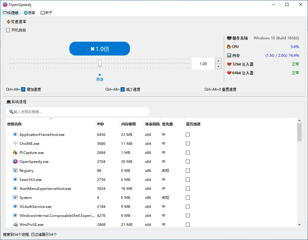 该软件并非常规的游戏加速器,而是游戏变速器,如果你需要提升游戏进程的速度,可以尝试通过该软件来实现,不过经过我测试,该软件针对某些程序无效,具体的需要自行尝试。
