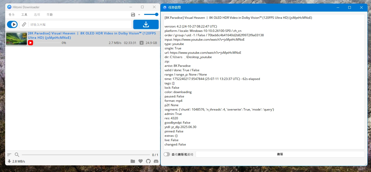油管下载方面,我个人进行测试,默认添加下载会选择最高规格的质量进行下载,下面是相关截图: