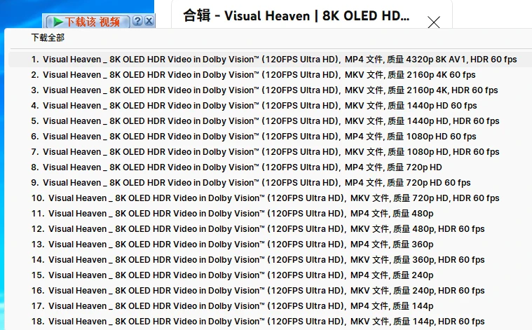 为了检验下载的质量是否为最高,我这边看了一下IDM的下载列表,4320P确实是最高了: