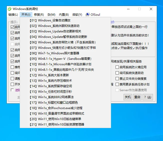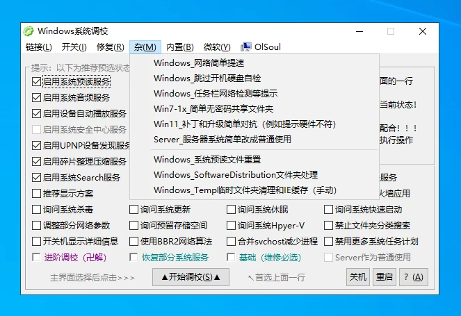 可以看到软件的支持的优化项目还是很多的,和之前站点推荐的另一款优化工具有点类似,感兴趣的可以看看: