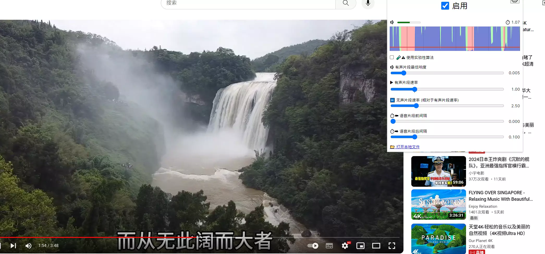 这个扩展还是很有意思的,可以自动跳过视频中停顿的时间,现在很多解说视频,中间会有部分时间是没有解说内容的,这个扩展的作用就是讲这些内容直接跳过。