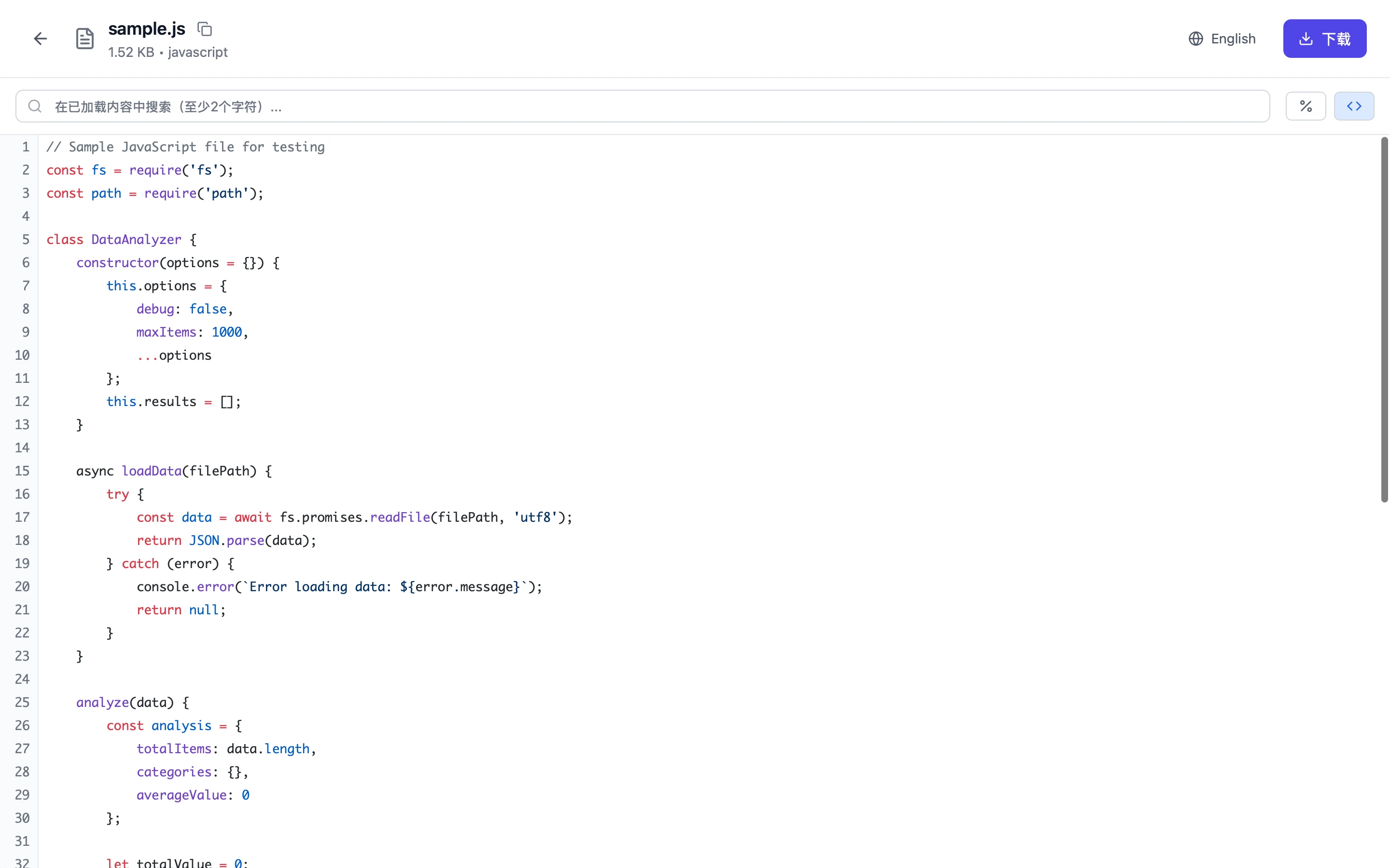测试发现载入数据的速度确实是很快,搜索内容的速度也符合其宣传的效率,但是还是发现一些小问题,比如某一行的数据很长的情况下,搜索关键词,定位可能会出现偏差,无法显示到含有关键词的位置。