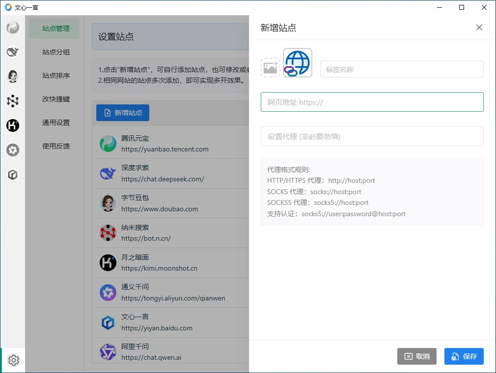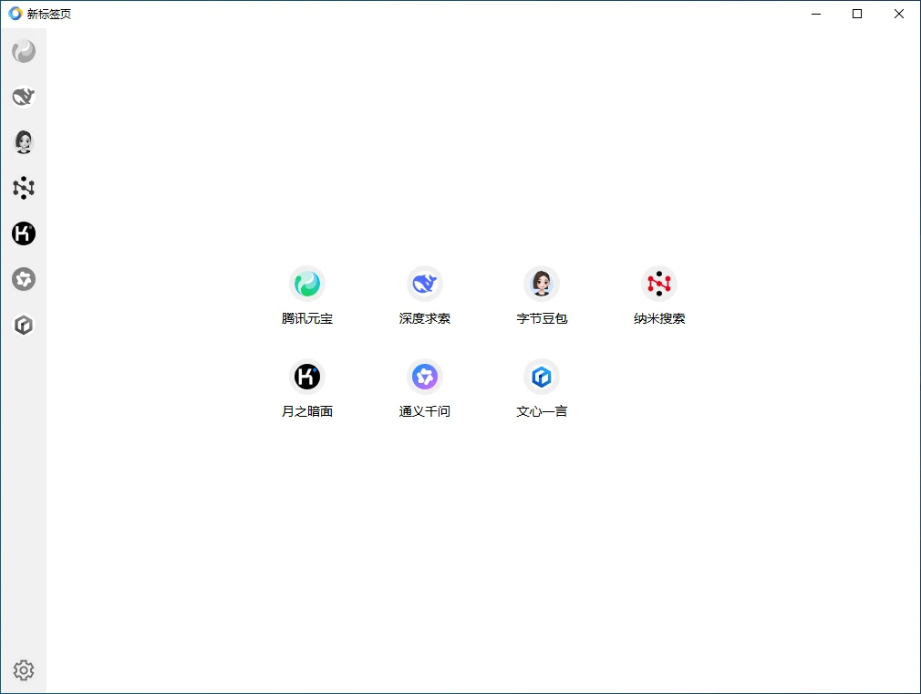 软件默认情况下内置了目前主流的AI站点,如果你觉得没用,可以通过设置进行删除,我这里随机选择一个站点展示效果如下: