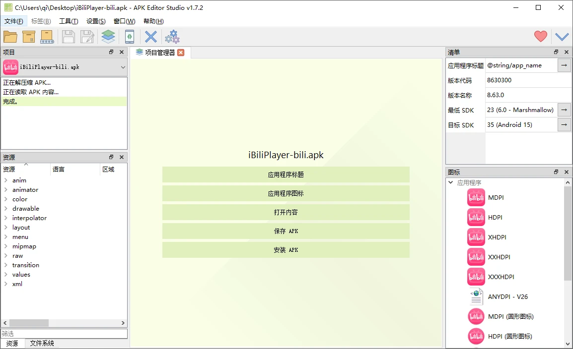 它允许用户轻松提取、编辑或替换APK资源。用户可以使用它更改Android应用图标和标题、移除不需要的权限、探索应用的内部结构、自动签名APK、在设备上安装APK等。