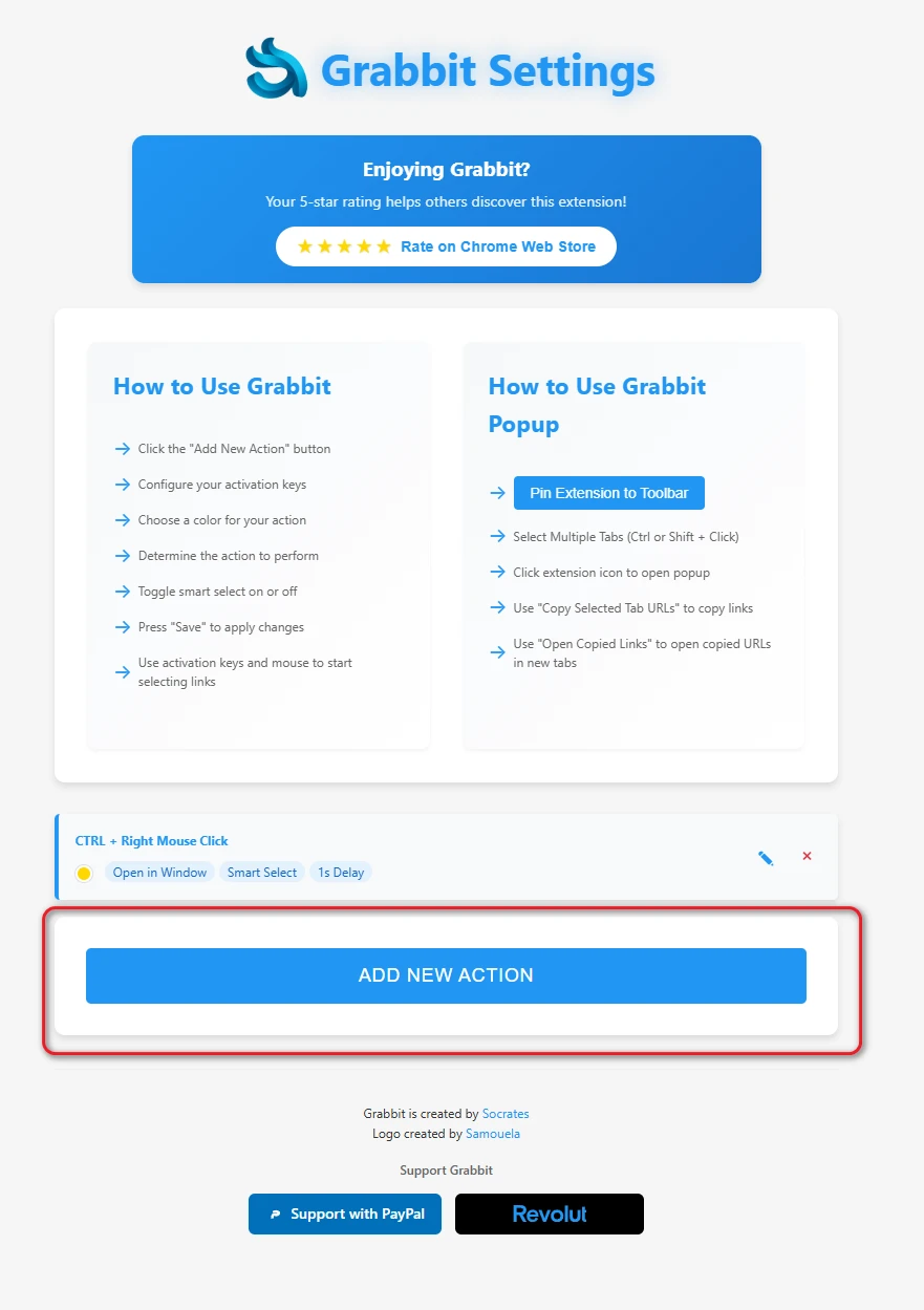 今天推荐的这个扩展名为Grabbit,在使用功能方面没有任何问题,和Linkclump的相似度在90%左右,基本可以替代Linkclump,如果你正好也在寻找Linkclump的替代扩展,可以试试该扩展。