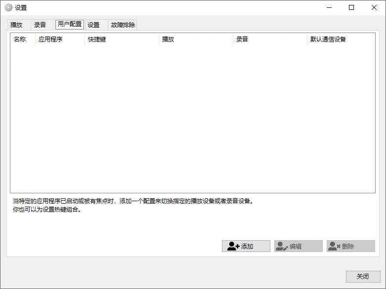 通过快捷键快速切换播放和录音设备(默认 Ctrl+Alt+F11 和 Ctrl+Alt+F7)