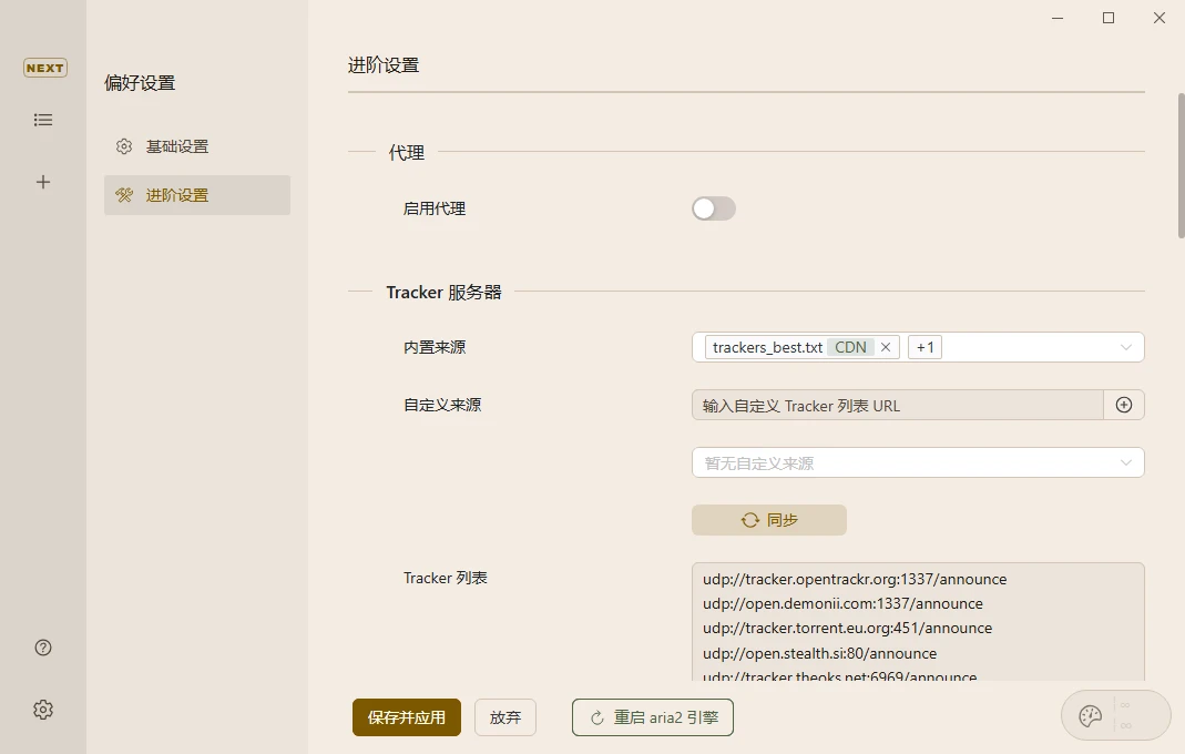 软件的使用方面需要注意的就是,虽然支持磁力下载,但是想要有速度还是有很多限定条件的,比如要有公网IP以及一个优秀的tracker列表。不过该软件目前已经内置了不少高效的tracker了,而且也不用你自己手动更新,可以自动更新,具体的可以看上面的设置项目。