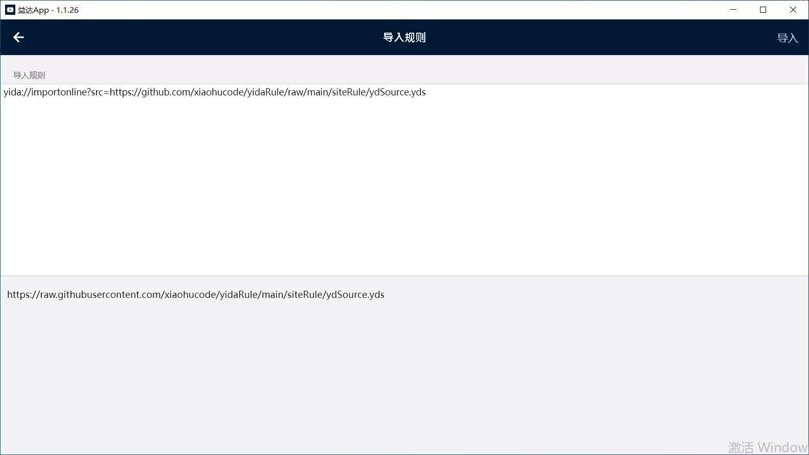 软件是基于指定规则来配合使用的,官方也提供了标准的规则内容: yida://importonline?src=https://github.com/xiaohucode/yidaRule/raw/main/siteRule/ydSource.yds