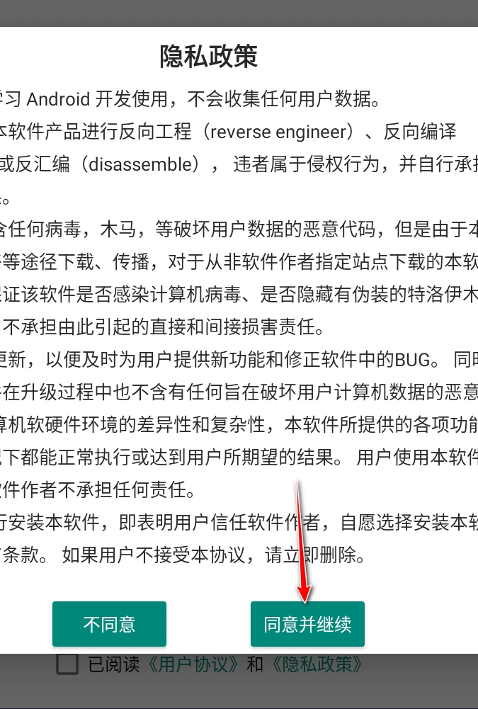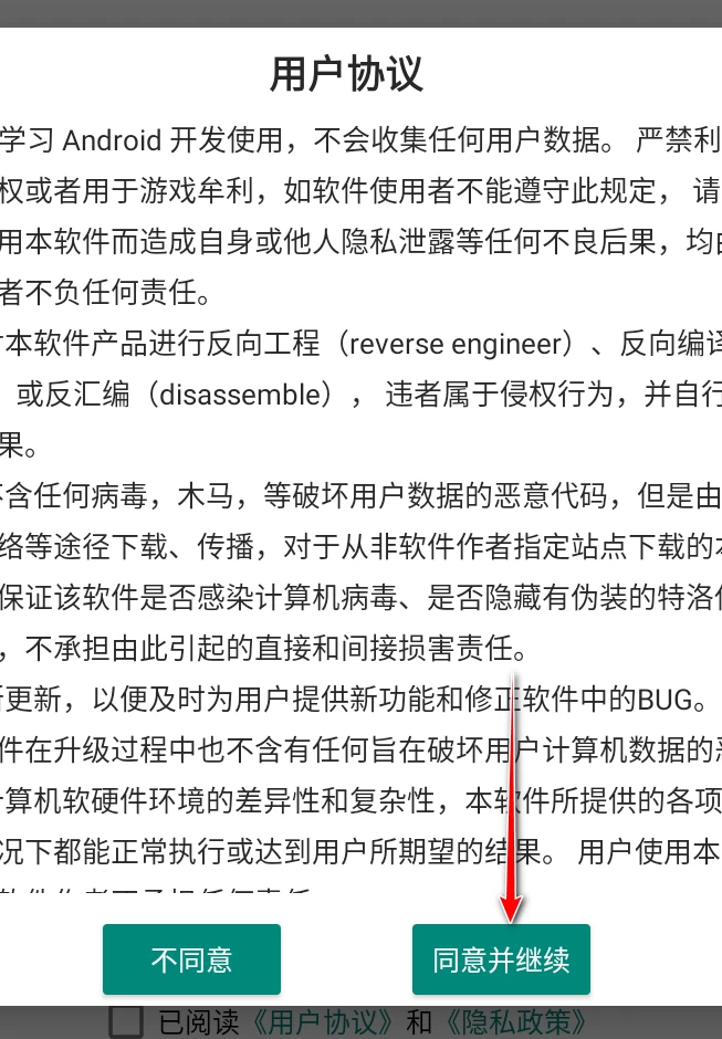 安装软件完成之后,进入软件即可。这个软件比较特殊,需要自行手动查看并且同意两个条款: